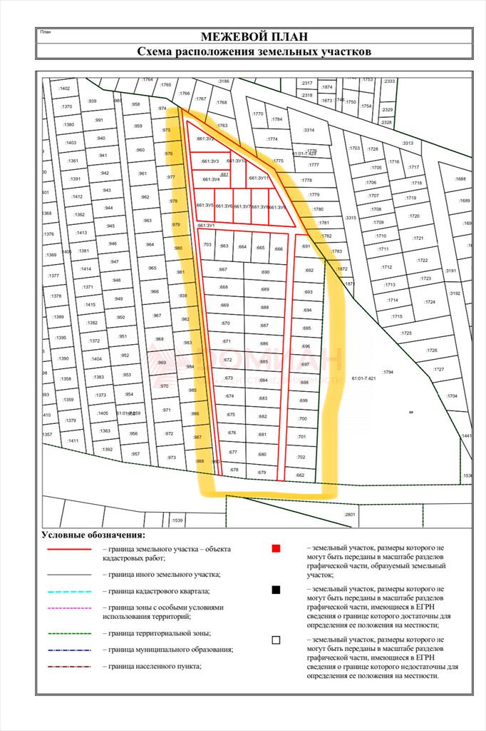 Площадь участка 4 га. Участок размежеван на 50 отдельных участков, площадью от 6 до 9 соток. Подъездные пути шириной 8 метров к каждому участку отмежеваны. Собственная электрическая подстанция на 150 кВт с возможностью увеличения мощности. Газовая труба вдоль автодороги.