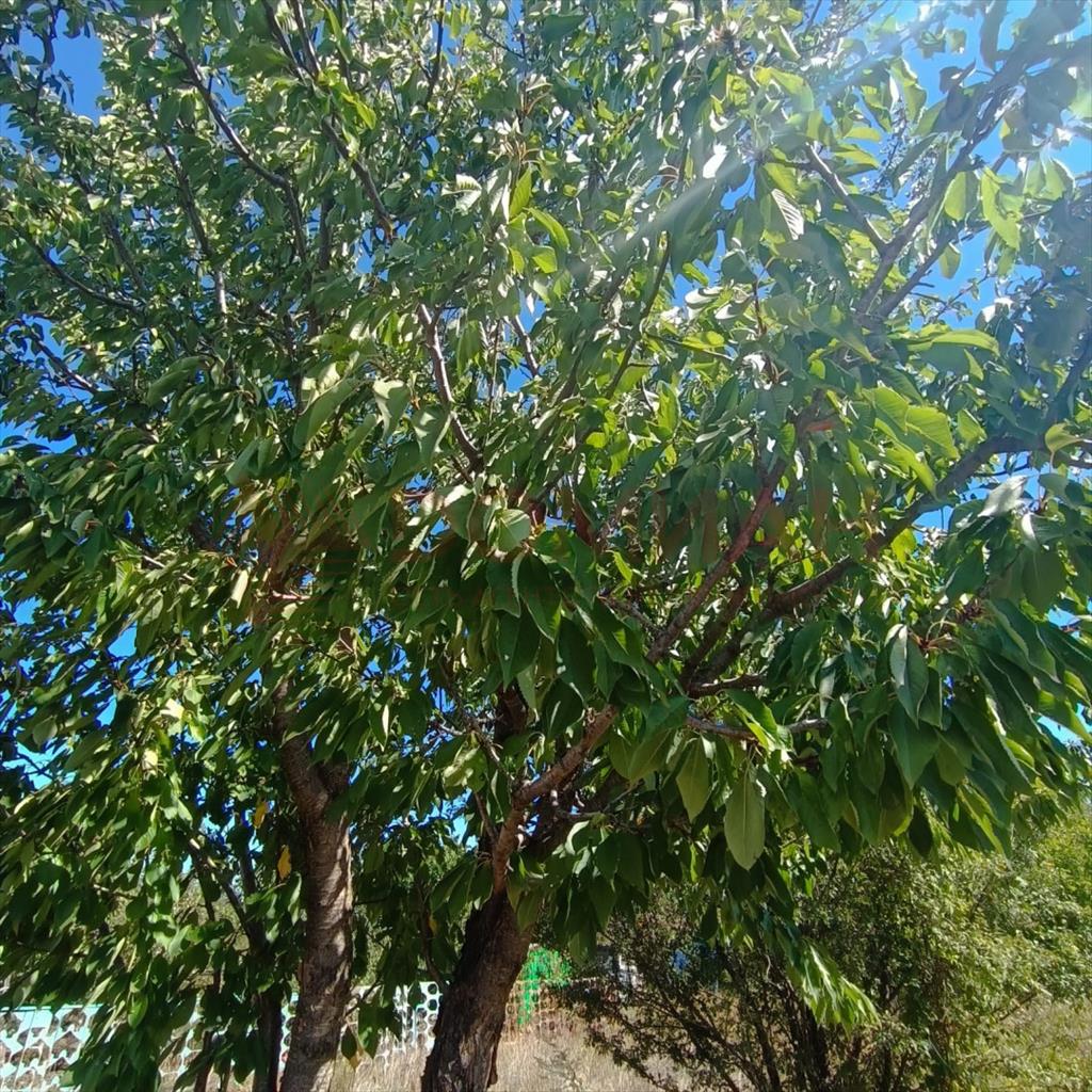 Участок ровный с плодоносящими деревьями. Участок огорожен забором.