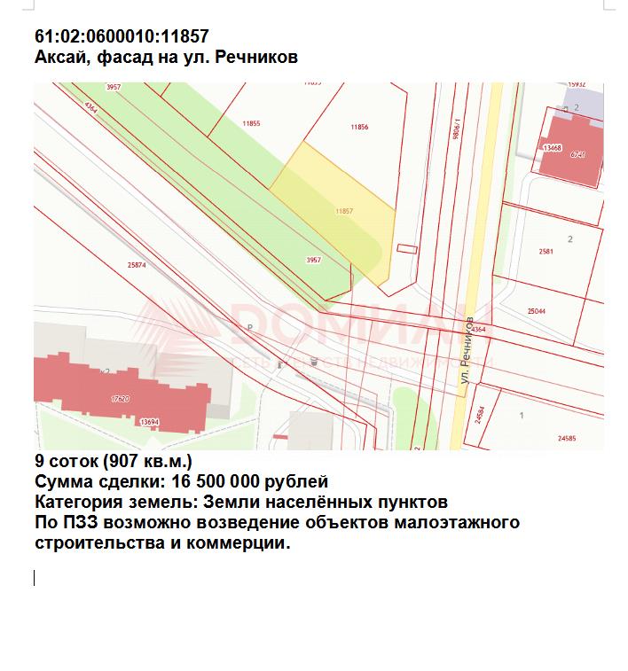 61:02:0600010:11857 - 9 соток (фасадный) 16 500 000 рублей.
