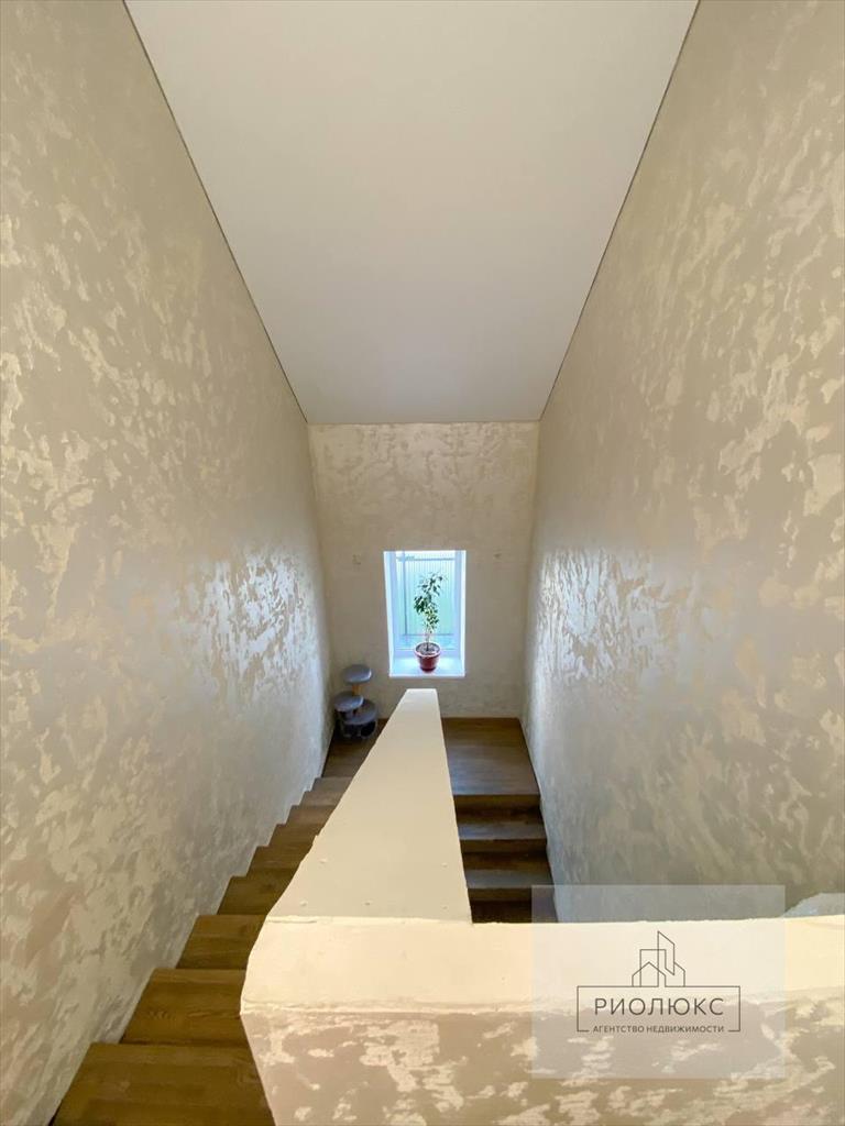 Шикарная лестница ведущая на второй этаж выполнена из ясеня (не из сосны), что огромный плюс.