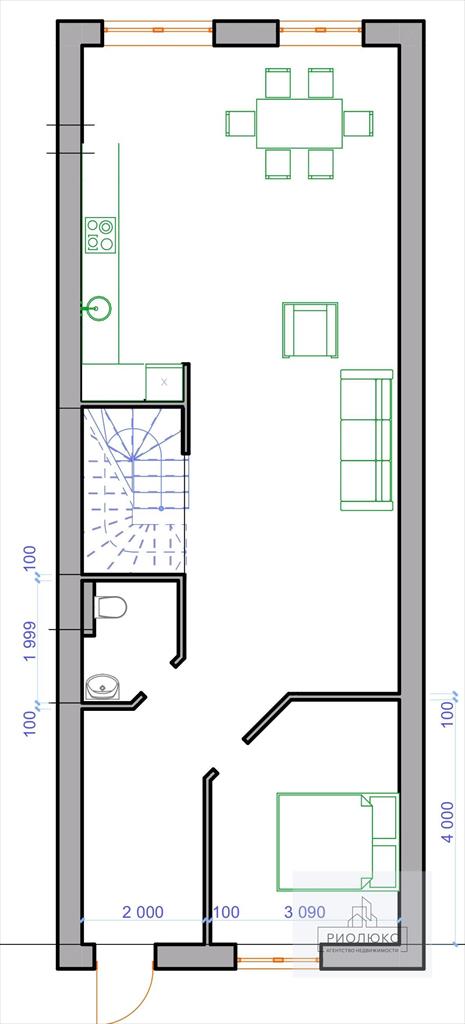 Двухэтажная квартира представлена в свободной планировке 1,2 этажи, что позволяет реализовать самые смелые дизайнерские идеи по своему усмотрению