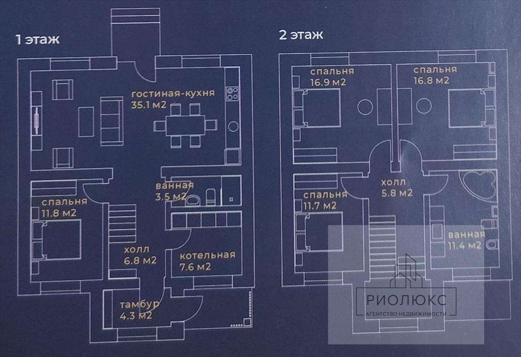 Дом в 2 этажа предоставляет достаточно места для реализации любых дизайнерских решений и удобства в повседневной жизни.