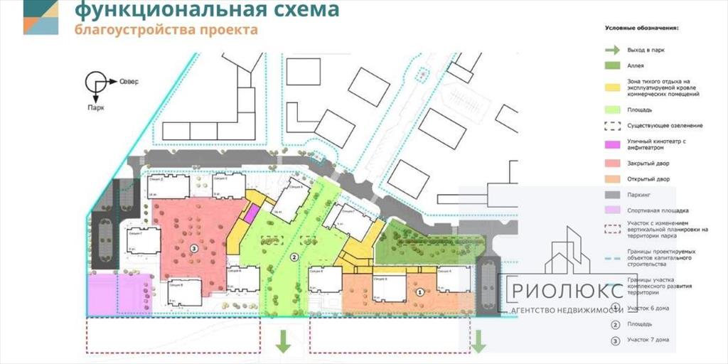 Парковые зоны — для прогулок, спорта и отдыха, уличный кинотеатр и амфитеатр.