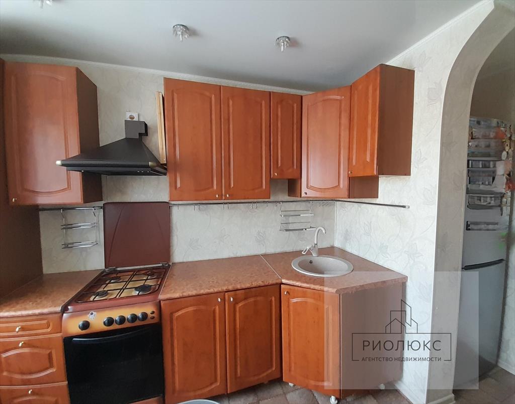 Кухня удобная, квадратная, кухонный гарнитур останется новым владельцам.