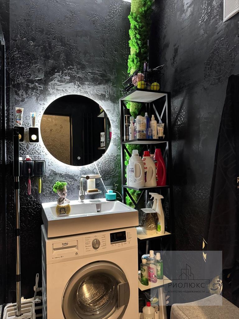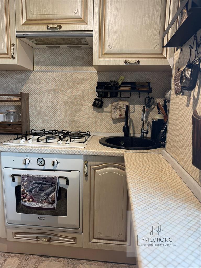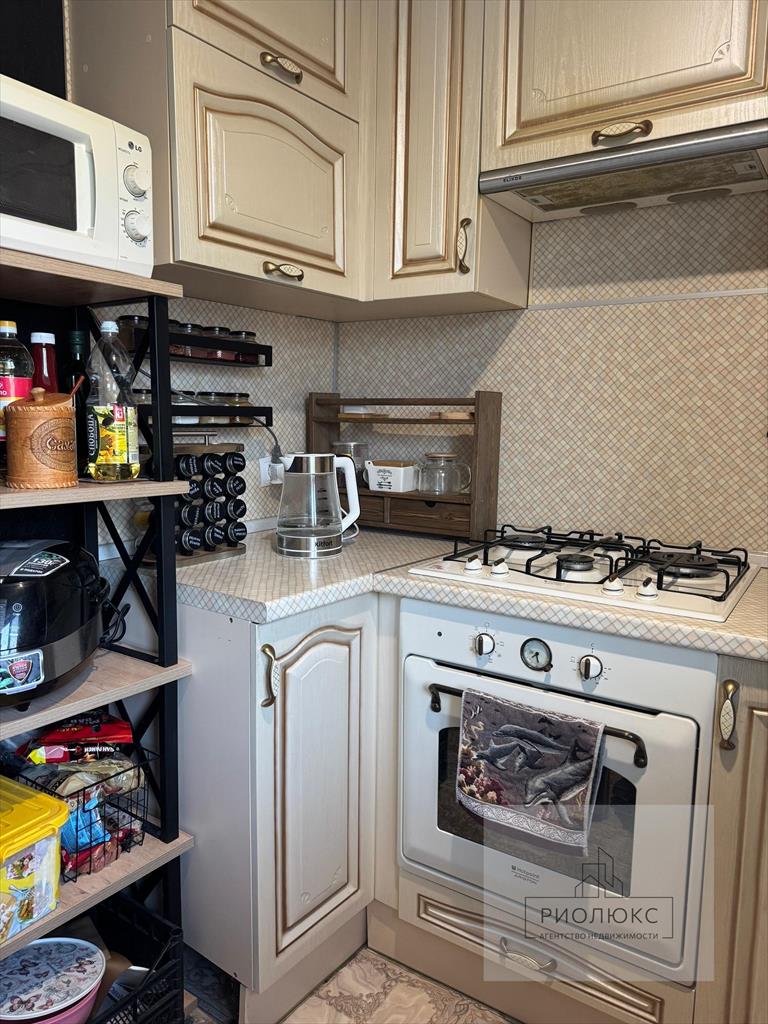 Практически вся мебель и техника остаются новым владельцам: есть кондиционер, стиральная машина, духовой шкаф, плита, вытяжка.